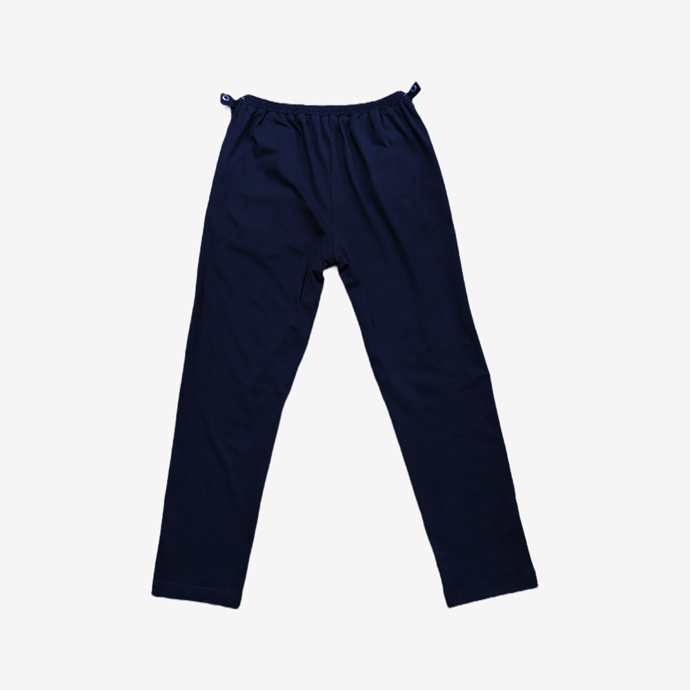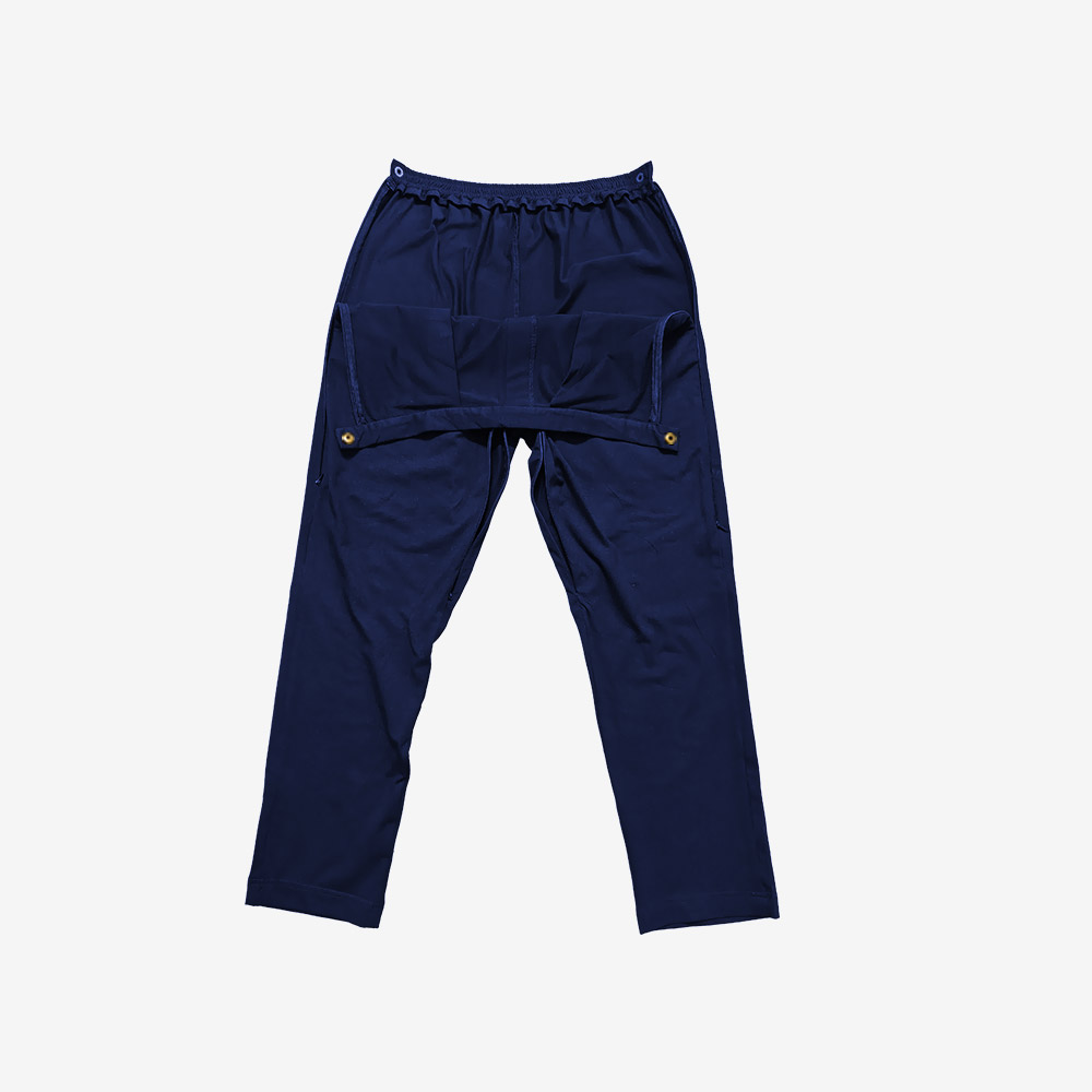 • Center Inseam Opening (Knee to Knee): A discreet front opening along the inseam from knee to knee allows improved access for catheter management, medical exams, and seated comfort.